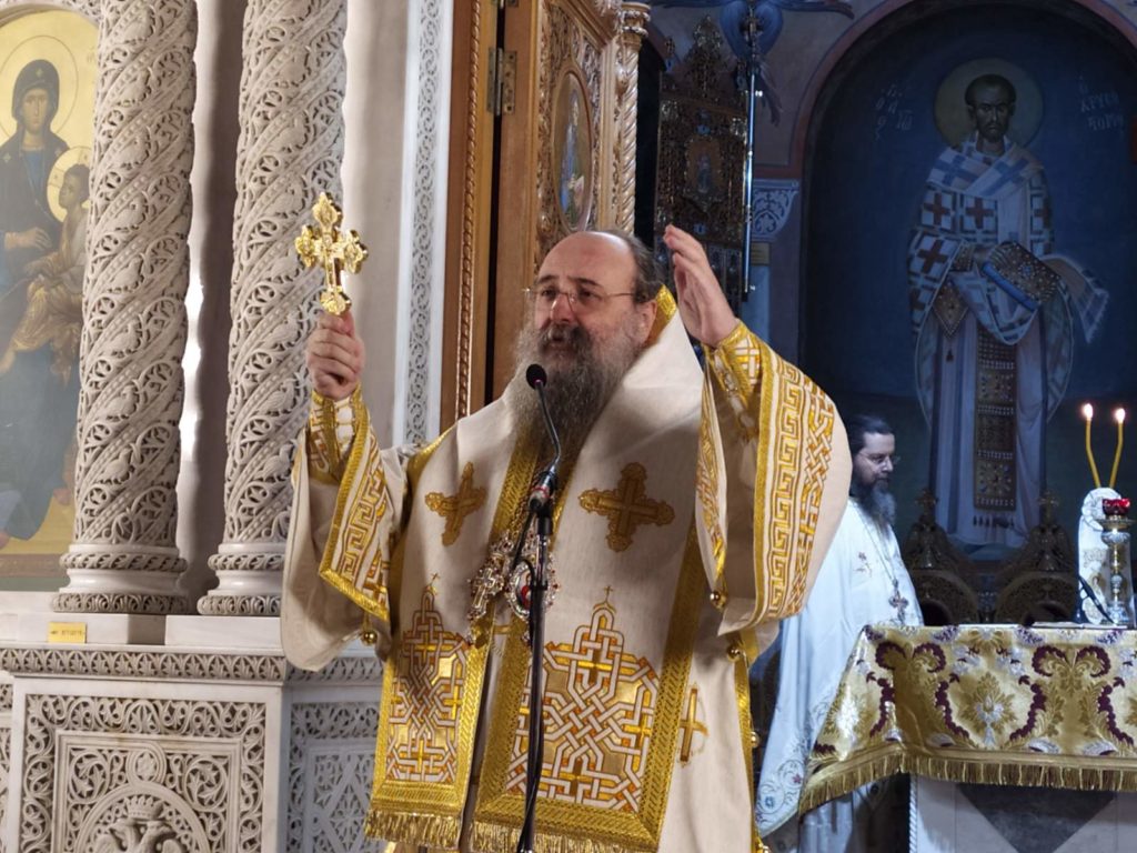 Στο τέλος της κατανυκτικής Θείας Λειτουργίας, ο Σεβασμιώτατος, ανεφέρθη στην θεολογία της εορτής των Εισοδίων, αναλύσας το κοντάκιον της εορτής, το οποίον χαρακτηρίζει την θεόπαιδα μαριάμ, «ως καθαρώτατον ναόν του Σωτήρος, ως πολυτίμητον παστάδα και παρθένον και ως ιερόν θησαύρισμα της δόξης του Θεού…» Ιδιαιτέρως εσημείωσε το ότι η Μαριάμ εισερχομένη στον Ναό και μάλιστα εις τα Άγια των Αγίων συνεισήγαγε και του Θεού την χάριν που σημαίνει ότι ως ηγιασμένη και τον Ναόν ηγίασε.