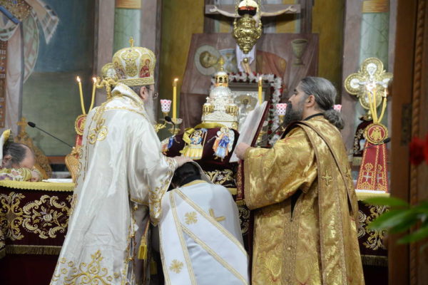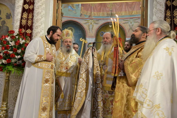 Ανήμερα, τελέσθηκε η Θεία Λειτουργία υπό του Σεβασμιωτάτου Μητροπολίτου Πατρών κ. Χρυσοστόμου, συλλειτουργούντος του Θεοφιλεστάτου Επισκόπου Κερνίτσης κ. Χρυσάνθου, κατά την διάρκεια της οποίας ο Σεβασμιώτατος εχειροτόνησε Πρεσβύτερον, τον Διάκονον Νικόλαον Σερέτην, υιόν του π. Χρίστου Σερέτη, Εφημερίου του Ιερού Μητροπολιτικού Ναού Ευαγγελιστρίας Πατρών.