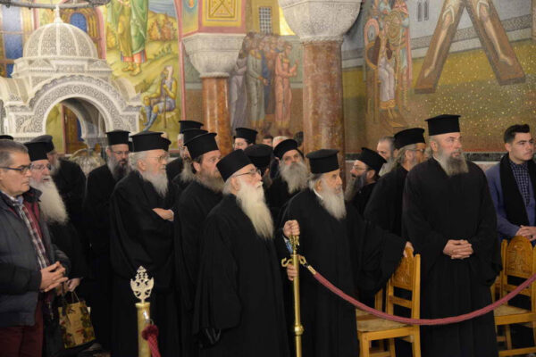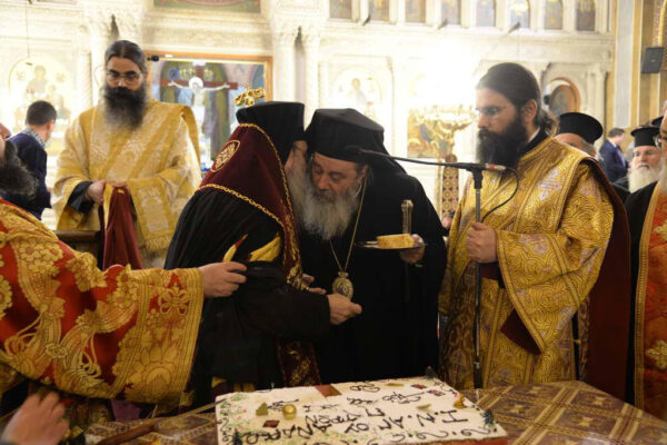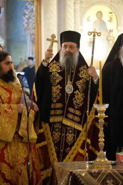 Στὸ τέλος τοῦ Ἑσπερινοῦ πραγματοποιήθηκε ἡ κοπὴ τῆς Βασιλόπιτας τῆς Ἱερᾶς Μητροπόλεως, ὑπό τοῦ Σεβασμιωτάτου, ὁ ὁποῖος στήν ὁμιλία του ἀνεφέρθη στήν ἒννοια τοῦ χρόνου σύμφωνα μέ τόν Μέγα Βασίλειο, ὁ ὁποῖος μιλάει γιά τόν χρόνο, α) σέ σχέση μέ τόν Θεό, β)σέ σχέση μέ τήν παροῦσα ζωή καί γ) σέ σχέση μέ τόν αἰωνιότητα.