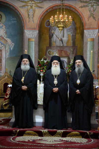 Συλλειτούργησαν οι Σεβασμιώτατοι Μητροπολίτες: Νέας Ιωνίας και Φιλαδελφείας κ. Γαβριήλ, ως Εκπρόσωπος της Ιεράς Συνόδου της Εκκλησίας της Ελλάδος και του Μακαριωτάτου Προέδρου Αυτής, Αρχιεπισκόπου κ. Ιερωνύμου, Δημητριάδος και Αλμυρού κ. Ιγνάτιος, Πρόεδρος της Ειδικής Επιτροπής Πολιτιστικής Ταυτότητος της Ιεράς Συνόδου, ο οικείος Αρχιερεύς, Μητροπολίτης Πατρών κ. Χρυσόστομος και ο Θεοφιλέστατος Επίσκοπος Κερνίτσης κ. Χρύσανθος.