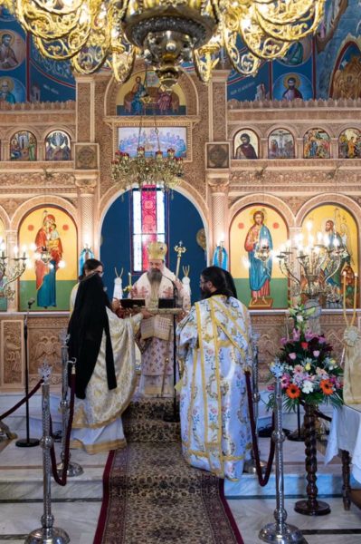 Συλειτούργησαν μετά του Σεβασμιωτάτου, ο Ηγούμενος της Ιεράς Μονής Ομπλού Πανοσιολογιώτατος Αρχιμ. π. Νεκτάριος Κωτσάκης και οι Πατέρες της Μονής και άλλοι Κληρικοί της Ιεράς Μητροπόλεώς μας, ενώ η συμμετοχή των ευσεβών Χριστιανών ήτο μεγάλη.