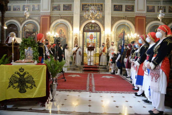 Μετά το μνημόσυνο των προασπιστών της Βασιλευούσης, ο Σεβασμιώτατος, εδεήθη υπέρ μακαρίας μνήμης και αιωνίου αναπαύσεως, των ευκλεώς αγωνισαμένων και ηρωικώς πεσόντων κατά την μάχη της Κρήτης (1941) και για τα θύματα της φρικτής Γερμανικής βαρβαρότητος εις βάρος του αμάχου πληθυσμού της Κρήτης και την ολοσχερή καταστροφή ολοκλήρων χωριών.
