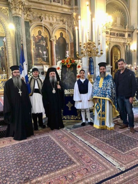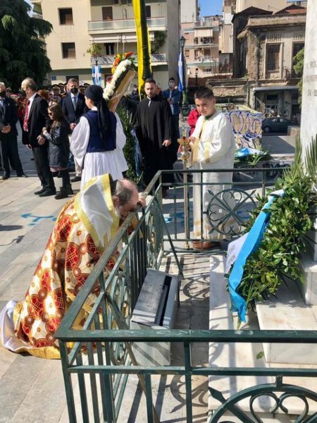 Μετά την Θεία Λειτουργία ελιτανεύθη η ιερά Εικών του Εθνοιερομάρτυρος Αγίου Γρηγορίου του Ε’ και ανεπέμφθη δέηση ενώπιον της προτομής του μεγάλου Πατριάρχου, κατετέθησαν στέφανοι και εψάλη ο Εθνικός Ύμνος.