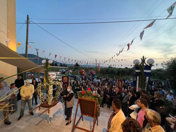 Το απόγευμα τελέσθηκε ο Μεθέορτος Εσπερινός, η Ιερά Παράκλησις και η Λιτάνευσις της τιμίας Κάρας και της ιεράς Εικόνος της Αγίας στους δρόμους της Ενορίας, προεξάρχοντος του Θεοφιλεστάτου Επισκόπου Κερνίτσης κ. Χρυσάνθου, ο οποίος μίλησε επικαίρως αναφερθείς στον βίο και την πολιτεία της Μεγαλομάρτυρος Ειρήνης.
