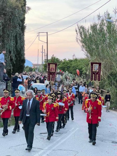 Το απόγευμα τελέσθηκε ο Μεθέορτος Εσπερινός, η Ιερά Παράκλησις και η Λιτάνευσις της τιμίας Κάρας και της ιεράς Εικόνος της Αγίας στους δρόμους της Ενορίας, προεξάρχοντος του Θεοφιλεστάτου Επισκόπου Κερνίτσης κ. Χρυσάνθου, ο οποίος μίλησε επικαίρως αναφερθείς στον βίο και την πολιτεία της Μεγαλομάρτυρος Ειρήνης.