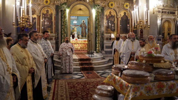 Την παραμονή της λαμπράς εορτής, ετελέσθη ο μέγας πανηγυρικός εσπερινός χοροστατούντος του Σεβασμιωτάτου Μητροπολίτου Πατρών κ. Χρυσοστόμου, με την συμμετοχή πλειάδος Κληρικών της πόλεως και της Ιεράς μητροπόλεως Πατρών.