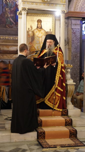 Την παραμονή της λαμπράς εορτής, ετελέσθη ο μέγας πανηγυρικός εσπερινός χοροστατούντος του Σεβασμιωτάτου Μητροπολίτου Πατρών κ. Χρυσοστόμου, με την συμμετοχή πλειάδος Κληρικών της πόλεως και της Ιεράς μητροπόλεως Πατρών.