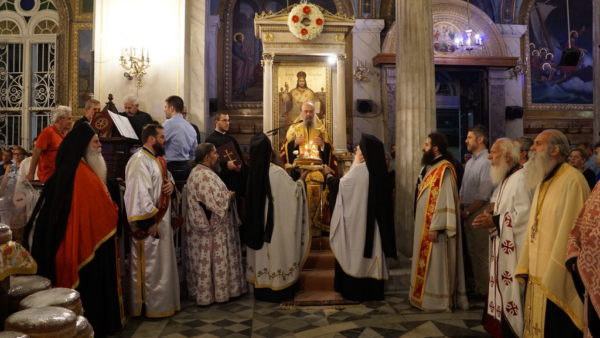 Πλήθος προσκυνητών προσήλθε στην ιερά Ακολουθία με το προσκύνημα να έχει αρχίσει από την προηγουμένη ημέρα και βέβαια να συνεχίζεται καθ’ όλην τη νύχτα και ως κατ’ έτος συμβαίνει και ανήμερα και την επομένη ημέρα.