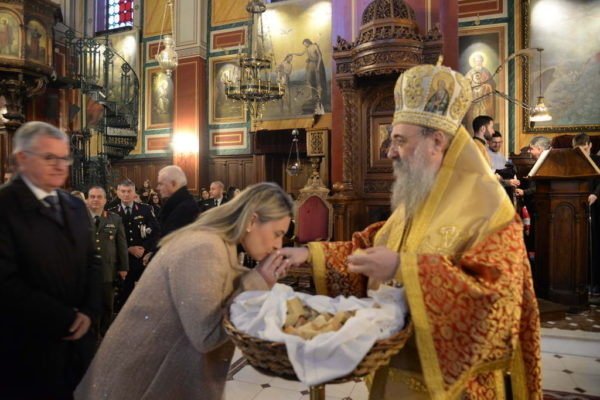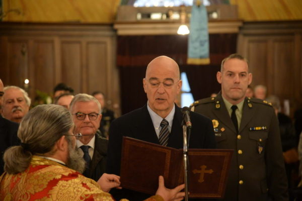Στον Ιερό Μητροπολιτικό Ναό, εκκλησιάσθη, ο Υπουργός Εθνικής Αμύνης κ. Νικόλαος Δένδιας, τον οποίον προσεφώνησε και καλωσόρισε, εναγάπη, ο Μητροπολίτης, ευχηθείς τα δέοντα για τήνεπιτυχία στην ευθυνοφόρο αποστολή του και θέση του και του προσέφερε ιεράν εικόνα με παράσταση τήςσταυρώσεως του Αποστόλου Ανδρέου.