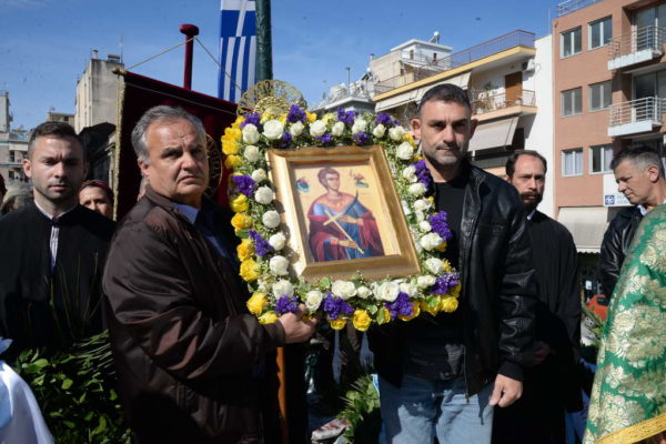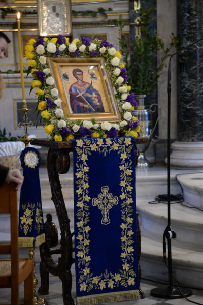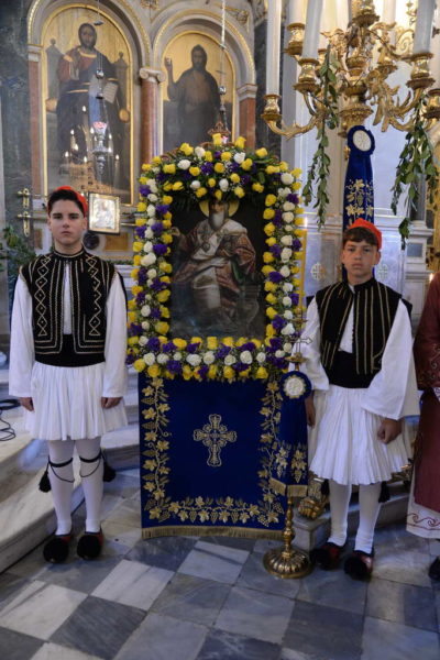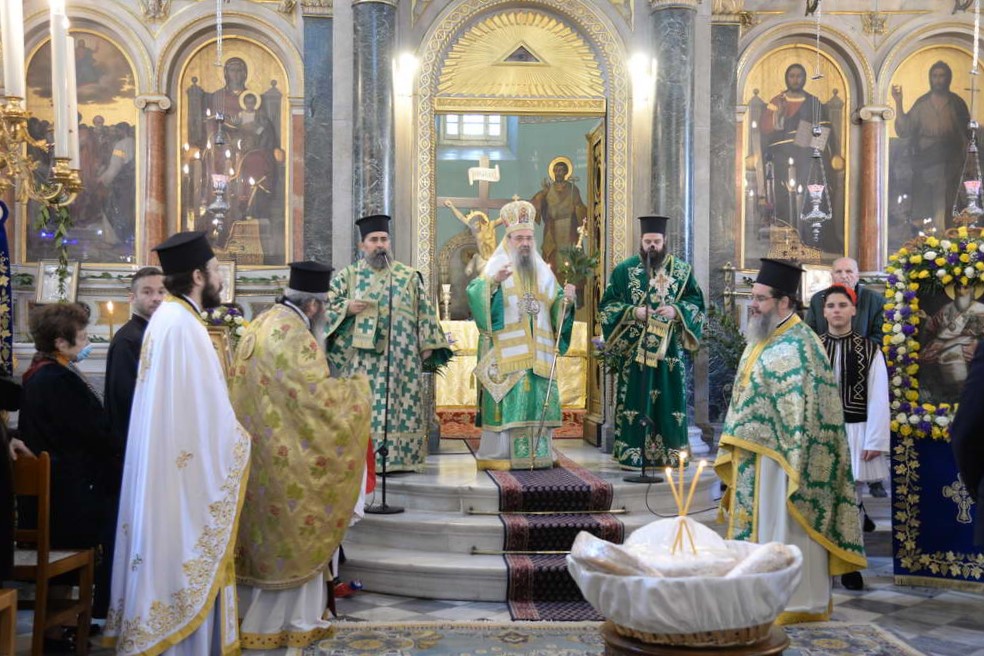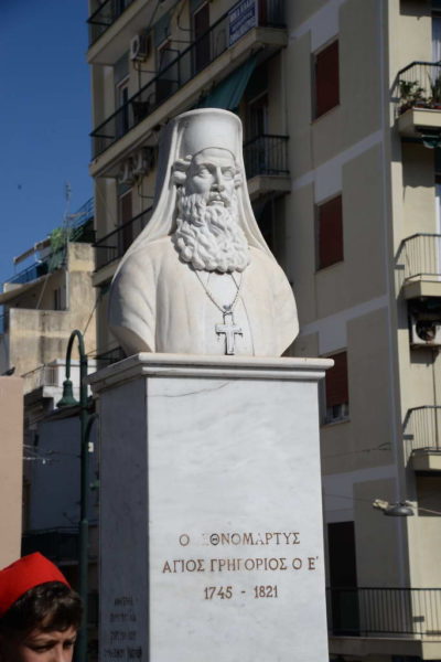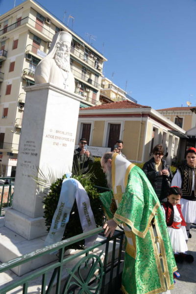 Μετά την Θεία Λειτουργία, λιτανεύθηκε η ιερά Εικόνα του Αγίου Εθνοϊεορομάρτυρος Γρηγορίου του Ε’, αναπέμφθηκε δέηση, ενώπιον της προτομής του και κατετέθησαν στέφανοι.