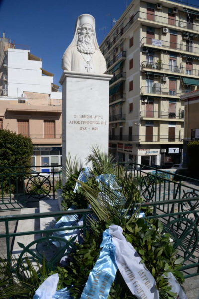 Κατά την ημέρα αυτή, ο Σύλλογος των εν Πάτραις Γορτυνίων «Άγιος Γρηγόριος ο Ε’», τίμησε τον Δημητσανίτη, Άγιο Ενθοϊερομάρτυρα, Γρηγόριο τον Ε’, ο οποίος ανήμερα το Πάσχα, 10 Απριλίου 1821, κρεμάστηκε από τους Τούρκους, στην κεντρική Πύλη των Πατριαρχείων, η οποία έκτοτε παραμένει κλειστή.