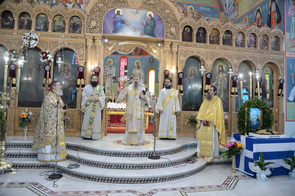 Την Θείας Λειτουργίας η οποία τελέσθηκε την Κυριακή 8 Φεβρουαρίου στον Ιερό Ναό Αγίου Χαραλάμπους Τσουκαλεΐκων και του Ιερού Μνημοσύνου, προέστη ο Σεβασμιώτατος Μητροπολίτης Πατρών κ. Χρυσόστομος, ο οποίος με λόγο μεστό νοημάτων, αναφέρθηκε στην μεγάλη προσωπικότητα του μακαρίου και αοιδίμου Αρχιστρατήγου, ο οποίος οδήγησε την Ελλάδα μέσα από αγώνες ενδόξους στην Ελευθερία.
