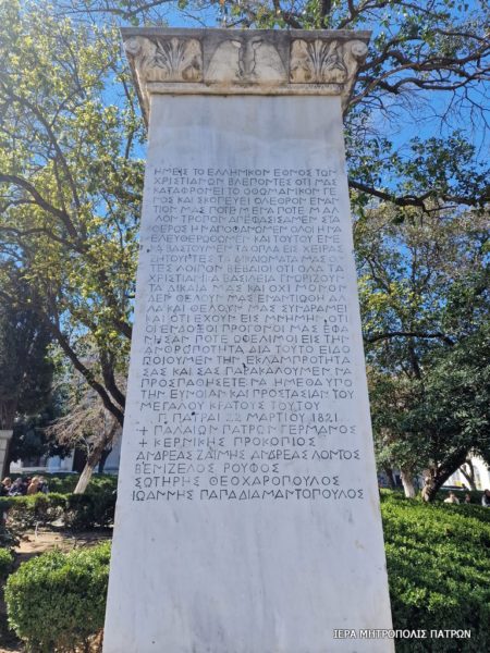 Την Πάτρα και την Ελλάδα ολόκληρη, ευλογεί και οδηγεί ο Παλαιών Πατρών Γερμανός, κρατώντας το Λάβαρο και επαναλαμβάνοντας διαχρονικά: «Η να ελευθερωθώμεν η να αποθάνωμεν όλοι!…»