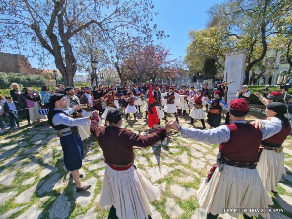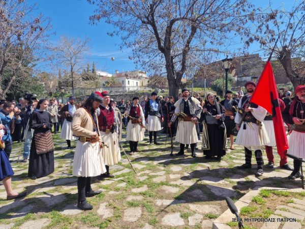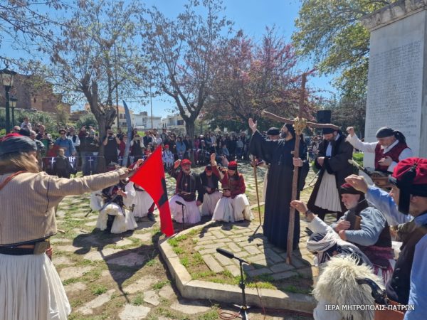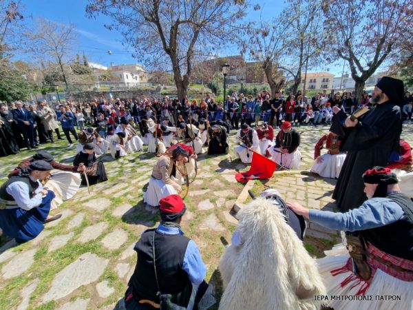 Αλλά και στον τόπο που ύψωσε την Σημαία, ο θρυλικός Ιεράρχης και κάτω από τον Τίμιο Σταυρό όρκισε τα παλληκάρια και εξαπέλυσε το περίφημο Επαναστατικό Μανιφέστο, προς τους Προξένους των ξένων Δυνάμεων, τιμήθηκε ο Ιεράρχης και οι ηρωικοί προασπιστές των Ιερών και των Οσίων του Γένους μας, με μια συγκλονιστική τελετή της Αναπαράστασης αυτού του ιστορικού γεγονότος, από τον Λαογραφικό Σύλλογο «Μωραΐτες εν χορώ», υπό την αιγίδα της Ιεράς Μητροπόλεως Πατρών.