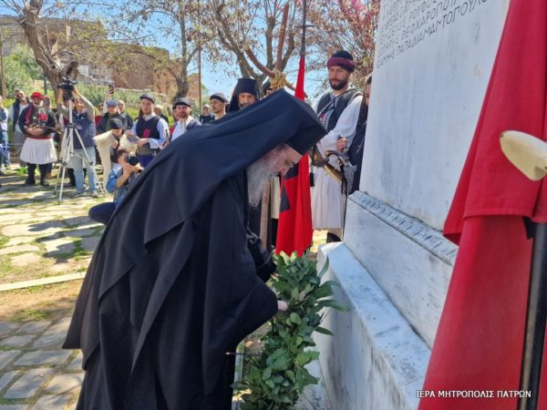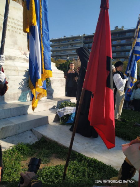 Κάτω από τον Ανδριάντα του λαμπρού Ιεράρχη, στα Ψηλά υποκλίθηκε η πόλη του Πρωτοκλήτου και η Ελλάδα σύμπασα για μια ακόμη φορά. “Tον τιμήσαμε, καταθέσαμε δάφνινο στεφάνι στη μνήμη του και υποκλιθήκαμε Άρχοντες και Λαός, μικροί και μεγάλοι μπροστά στην μεγίστη προσφορά του στην Εκκλησία και το Γένος”, αναφέρει η Μητρόπολη Πατρών.