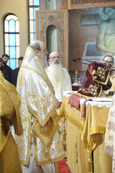 Στην Θεία Λειτουργία συμμετείχε και ο Προϊστάμενος της Αδελφότητος Θεολόγων «Ο ΣΩΤΗΡ», Αρχιμ. π. Αστέριος Χατζηνικολάου και πολλοί Πατέρες εκ της Αδελφότητος.