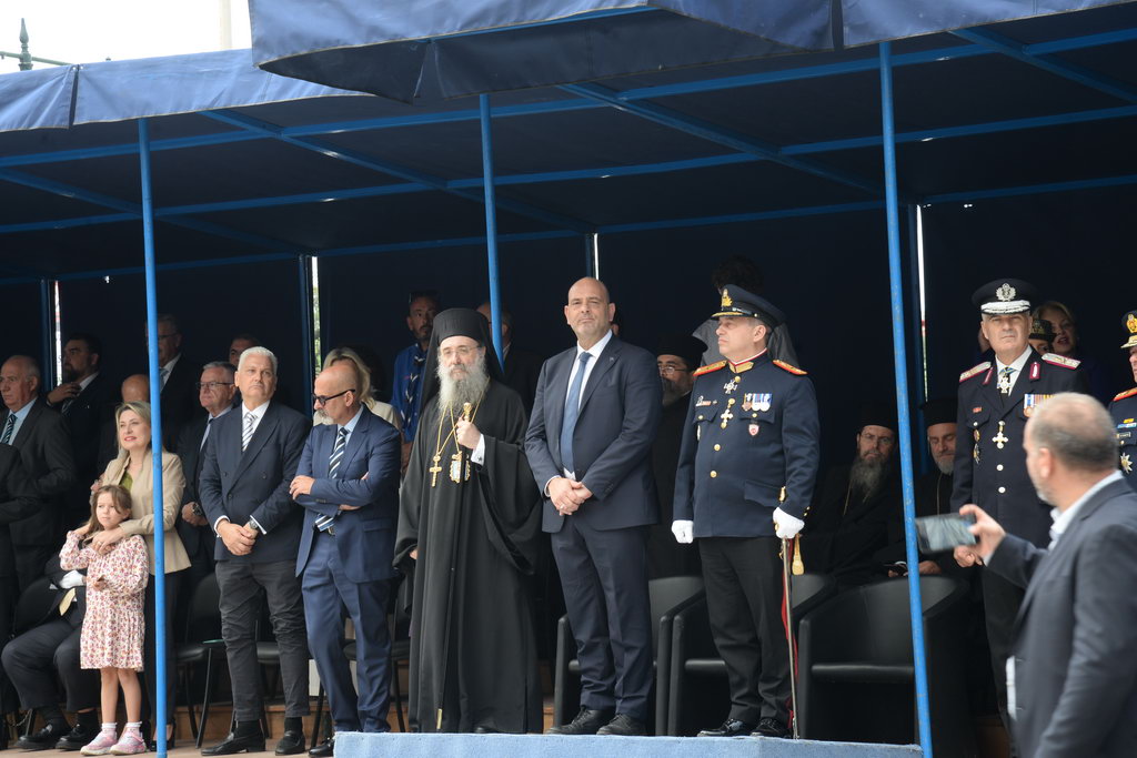 Τέλος ο Σεβασμιώτατος παρηκολούθησε και ευλόγησε την μεγαλειώδη παρέλαση των πολιτικών και στρατιωτικών τμημάτων και συνεχάρη ιδιατέρως τους Μαθητάς και Φοιτητάς και τα Στρατευμένα παιδιά μας.