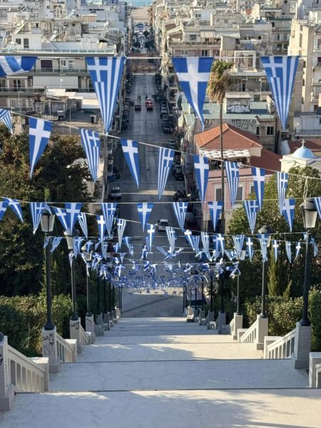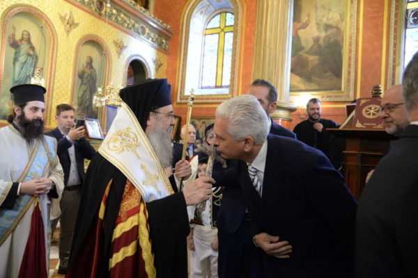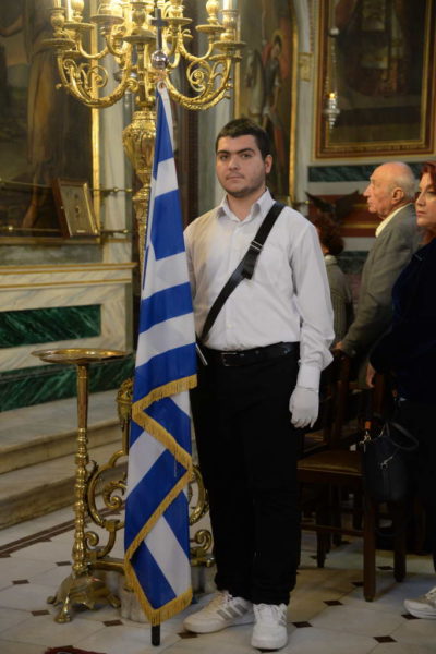 Εν συνεχεία ο Σεβασμιώτατος τέλεσε την Δοξολογία στον Ιερό Ναό του Αγίου Νικολάου Πατρών και παρηκολούθησε την παρέλαση από την εξέδρα των Επισήμων.