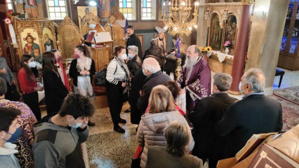 Μετά την Θεία Λειτουργία, ακολούθησε απλό κέρασμα στο Αρχονταρίκι των Ενοριών και οι εισηγήσεις του Σεβασμιωτάτου, για θέματα πνευματικής και λειτουργικής φύσεως εν’ όψει του Αγίου Πάσχα, αλλά και για πρακτικά και διοικητικά ζητήματα, που αφορούν στις Ενορίες και στην σχέση των Ιερέων με την κοινωνία.