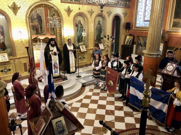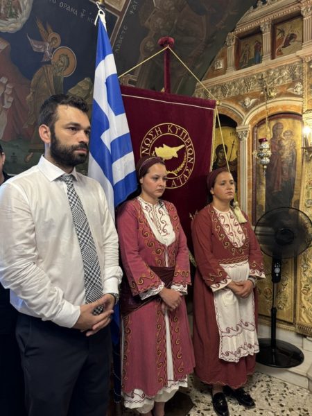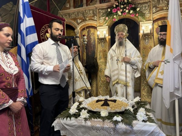 Με λόγους που συγκίνησαν το πλήθος των Εκκλησιασθέντων μίλησε για την βάρβαρη εισβολή των Τούρκων στην Κύπρο και την Κυπριακή τραγωδία που συνεχίζεται μέχρι σήμερα, για όσους συνείργησαν και συνεργούν στην συνέχιση αυτής της αδικίας και εκάλεσε όλους να στηρίζουν κάθε προσπάθεια για την επίλυση του Κυπριακού ζητήματος, ο Πρόεδρος της Ενώσεως Κυπρίων Νομού Αχαΐας, κ. Ευάγγελος Πολυβίου.