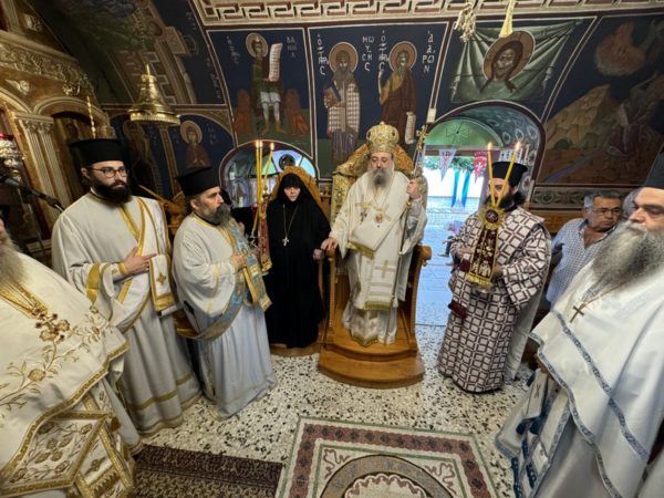 Ανήμερα της εορτής του Προφήτου Ηλιού, ο Σεβασμιώτατος Μητροπολίτης Πατρών κ. Χρυσόστομος, τέλεσε την Θεία Λειτουργία, εν πληθούση Εκκλησία, στην Ιερά Μονή του Προφήτου Ηλιού Πατρών, όπου παλαιότερα σε κοπέντα κορμό δένδρου, φυτευθέντος υπό του αγίου Γερβασίου και των κατασκηνοπαίδων, ευρέθη ο θαυματουργικώς τυπωθείς αχειροποίητος Σταυρός.