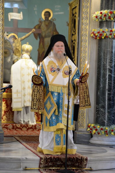 Στο κήρυγμά του ο Σεβασμιώτατος, απευθυνόμενος προς το πλήθος των ευσεβών Χριστιανών, που κατέκλυσε τον Ιερό Ναό, μίλησε για την υπόθεση της εορτής και ανεφέρθη στον λόγο του Αγίου Ιωάννου του Δαμασκηνού «εις το Γενέσιον της Θεοτόκου». Εστάθη δε σε χαρακτηρισμούς του Θεοφόρου αυτού πατρός για την Θεοτόκον, όπως «αξιόθεον θηγάτριον, κάλλος της ανθρωπίνης φύσεως, άξιον του Θεού καταγώγιον, του γένους ευγένεια…».