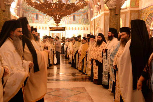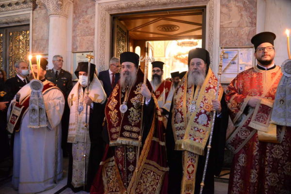 Ευχαρίστησε επίσης από καρδίας, τον Πατριάρχη Ιεροσολύμων κ.κ. Θεόφιλο, ο οποίος με τους Πατέρες της Αγιοταφιτικής Αδελφότητος, φυλάσσουν τα Πανάγια Προσκυνήματα, στην Αγία Γη και δίδουν μαρτυρία της Ορθοδόξου πίστεως και της Ορθοδόξου Ελλάδος.