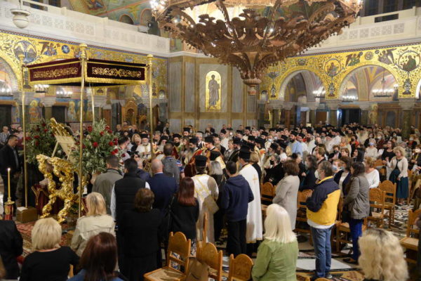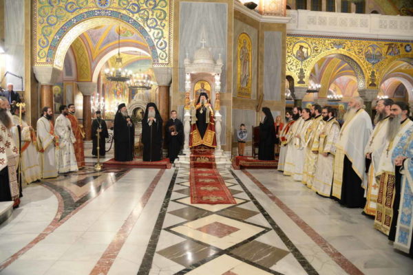 Μετά την δέηση που ανεπέμφθη ενώπιον της Ιεράς Εικόνος της Παναγίας τελέσθηκε ο μέγας Αρχιερατικός Εσπερινός, χοροστατούντος του Μητροπολίτου Πατρών κ. Χρυσοστόμου.