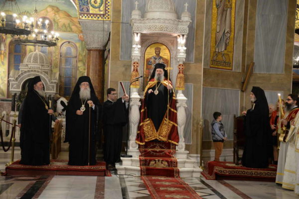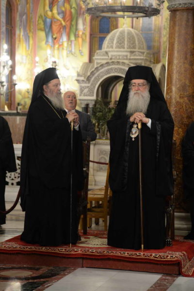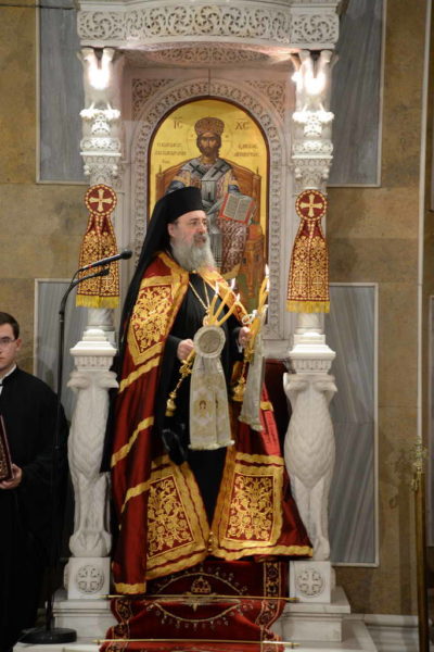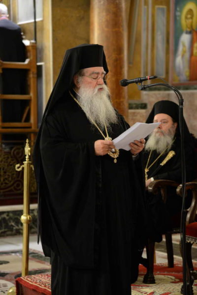 Αντιφώνησε ο Μητροπολίτης Διοκαισαρείας κ. Βενέδικτος, ο οποίος μετέφερε την ευλογία Πατριάρχη Ιεροσολύμων κ.κ. Θεοφίλου προς τον Μητροπολίτη Πατρών, τον ιερό Κλήρο, τους άρχοντας και προς το Χριστεπώνυμο Πλήρωμα της Αποστολικής Μητροπόλεως των Πατρών.