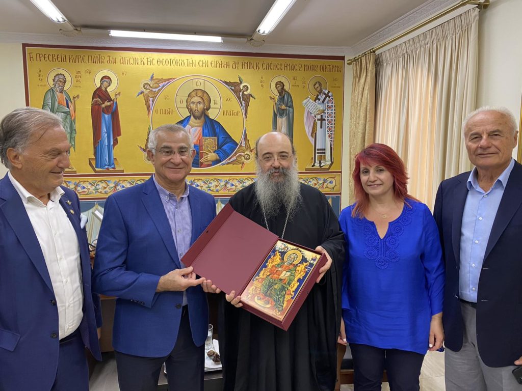 Στον κ. Δήμαρχο ο Σεβασμιώτατος προσέφερε ως ευλογία ιερά εικόνα του Αγίου Ανδρέου, αντίγραφο της Εφεστίου εικόνας του Αποστόλου, που φυλάσσεται στον Νέο Ιερό Ναό του στην Πάτρα.