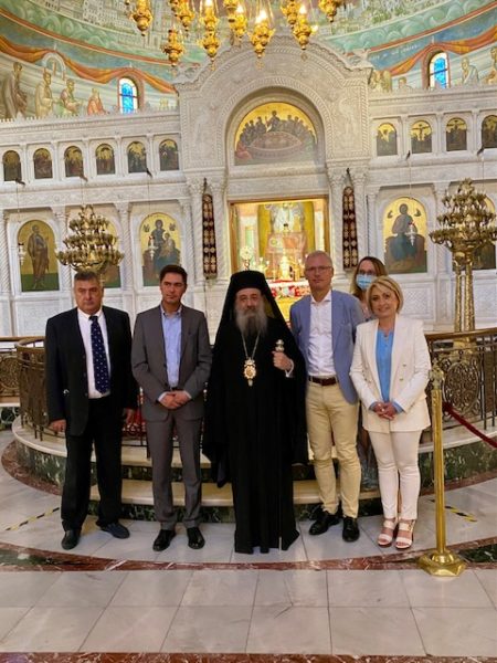 Στο πλαίσιο της επισκέψεώς τους στην Πάτρα για θέματα κοινού ενδιαφέροντος των χωρών τους με την Ελλάδα και εν προκειμένω με την πόλη των Πατρών, οι Πρέσβεις των χωρών Ελβετίας και Πολωνίας, Όλαφ Κγιέλσεν και Άρτουρ Λάμπερτ συναντήθηκαν με τον Σεβασμιώτατο Μητροπολίτη Πατρών κ. Χρυσόστομο, ο οποίος τους ξενάγησε στον μεγαλοπρεπή Ιερό Ναό του Αγίου Ανδρέου, όπου προσκύνησαν την αγία Κάρα του Πρωτοκλήτου και στον Σταυρό του Μαρτυρίου του και εν συνεχεία στον Παλαιό Ναό του Αγίου, όπου προσκύνησαν τον Τάφο του.