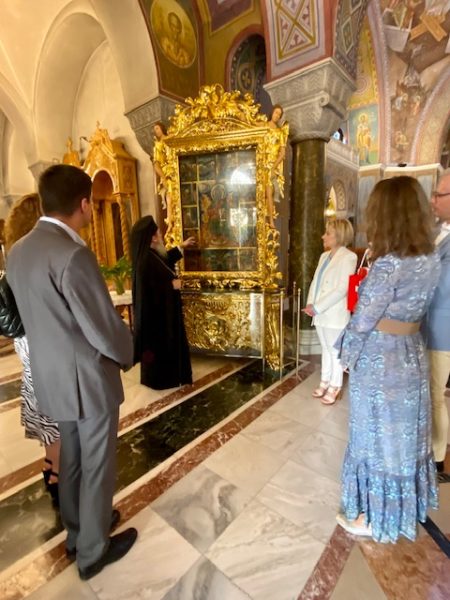 Οι δύο Πρέσβεις με την συνοδεία τους θαύμασαν το μεγαλείο του Ναού του Αγίου Αποστόλου Ανδρέου και ενθουσιάστηκαν με την ιστορία του τόπου μας γενικά.