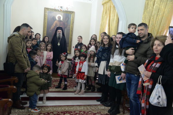 Πλήθη παιδιών, κατέκλυσαν το Επισκοπείο των Πατρών την παραμονή των Χριστουγέννων για να μεταφέρουν το μήνυμα της Θείας Ενανθρωπήσεως, μέσα από τα παραδοσιακά κάλαντα.