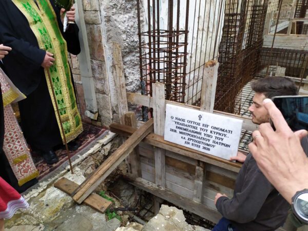 Το απόγευμα της εορτής της Αναλήψεως, Πέμπτη 28 Μαΐου 2020, ο Σεβασμιώτατος Μητροπολίτης Πατρών κ. Χρυσόστομος θεμελίωσε το ιερό Παρεκκλήσιο της Υπαπαντής του Σωτήρος Χριστού της Ενορίας Αγίας Βαρβάρας στη Πάτρα. Τελέστηκε Αγιασμός και τέθηκε ο θεμέλιος λίθος ενώ ο Σεβασμιώτατος μίλησε προς τον προϊστάμενο του Ιερού Ναού π. Γερασιμάγγελο Στανίτσα και τον συνεφημέριό του π. Κωνσταντίνο Χριστοδουλόπουλο για το έργο που επιτελούν και τους επαίνεσε για την προσπάθεια της ανέγερσης του Ιερού Παρεκκλησίου.