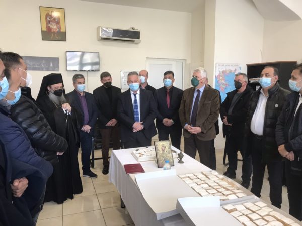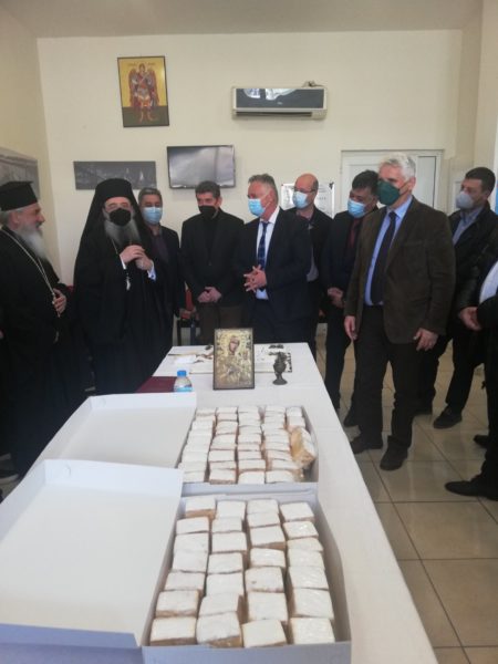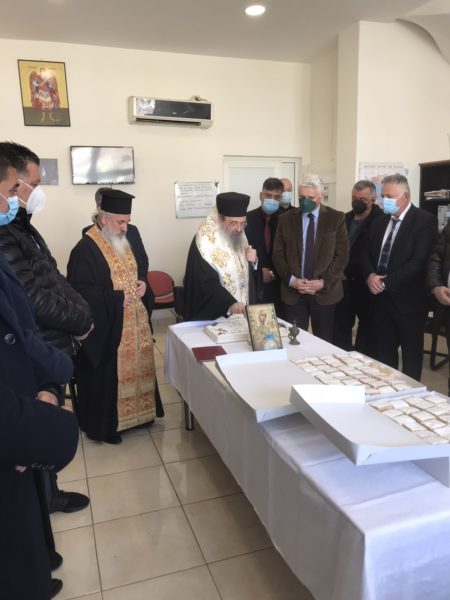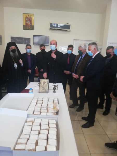Την Βασιλόπιττα του Συλλόγου «Άγιος Ταξιάρχης» Κάτω Αχαΐας και της Ανοιχτής Κοινότητος Έρευνας Πληροφόρησης και Πολιτισμού Πάτρα Ζώνη 14-Αreα 14, ευλόγησε ο Σεβασμιώτατος Μητροπολίτης Πατρών κ. Χρυσόστομος, την Κυριακή 13 Φεβρουαρίου 2022 στα Γραφεία του Συλλόγου, στην Κάτω Αχαΐα, μαζί με τον Αρχιερατικό Επίτροπο Δύμης και Προϊστάμενο της Ενορίας Τιμίου Προδρόμου Κάτω Αχαίας Πρωτ. π. Απόστολο Δημητρόπουλο.
