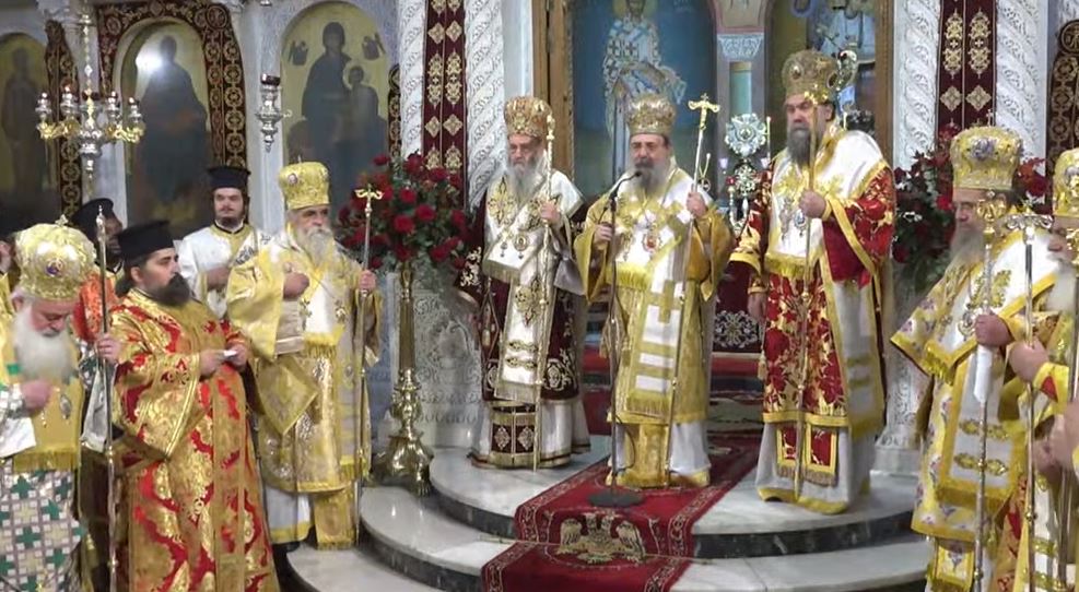 Στο Πολυαρχιερατικό συλλείτουργο προεξάρχη ο Μητροπολίτης Ναυπάκτου και Αγίου Βλασίου κ. Ιερόθεος. Συλλειτουργούν οι Μητροπολίτες: Σερρών και Νιγρίτης κ. Θεολόγος, Ηλείας κ. Αθνάσιος, Ιερισσού Αγίου Όρους και Αρδαμερίου κ. Θεόκλητος, Κινσάσας κ. Θεοδόσιος, Καλαβρύτων και Αιγιαλείας κ. Ιερώνυμος, Γόρτυνος και Μεγαλοπόλεως κ. Νικηφόρος, Αιτωλίας και Ακαρνανίας κ. Δαμασκηνός, οι Θεοφιλέστατοι Επίσκοποι Κερνίτσης κ. Χρύσανθος και Τεγέας κ. Θεόκλητος, καθώς και ο οικείος Ποιμενάρχης, Μητροπολίτης Πατρών κ. Χρυσόστομος.