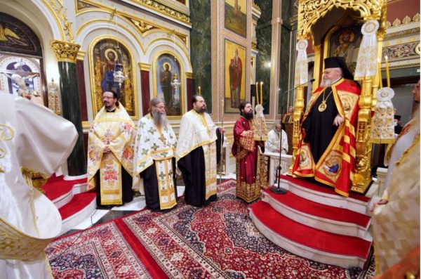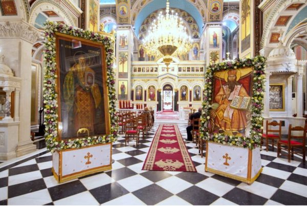 Χοροστάτησε ο Σεβασμιώτατος Μητροπολίτης Καισαριανής, Βύρωνος και Υμηττού κ.Δανιήλ, συγχοροστατούντων των Σεβασμιωτάτων Μητροπολιτών Προικοννήσου κ.Ιωσήφ, Κορωνείας κ.Παντελεήμονος, Σύρου κ.Δωροθέου, Γλυφάδας κ.Αντωνίου, Ιλίου, Αχαρνών και Πετρουπόλεως κ.Αθηναγόρα, Μεγάρων κ.Κωνσταντίνου, του Θεοφιλεστάτου Επισκόπου Ρωγών κ.Φιλοθέου και του οικείου Μητροπολίτου Πειραιώς κ.Σεραφείμ.
