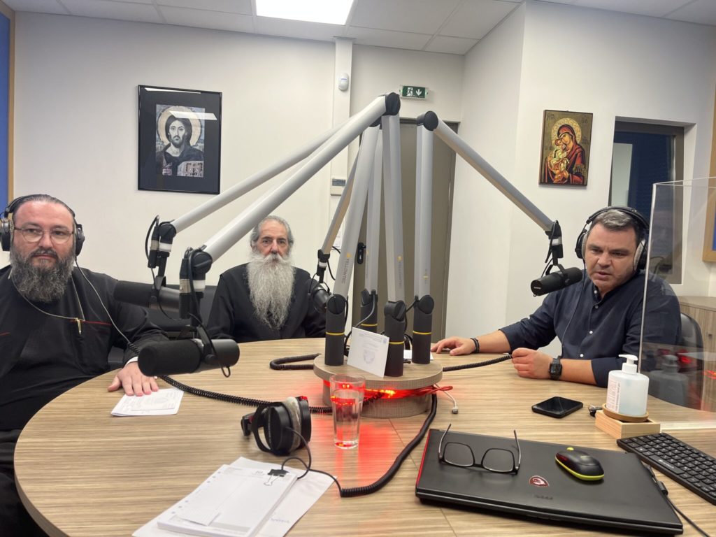 Στο στούντιο βρέθηκε και ο Γενικός Διευθυντής της Πειραϊκής Εκκλησίας, Αρχιμανδρίτης Αυγουστίνος Θεοδωρόπουλος.