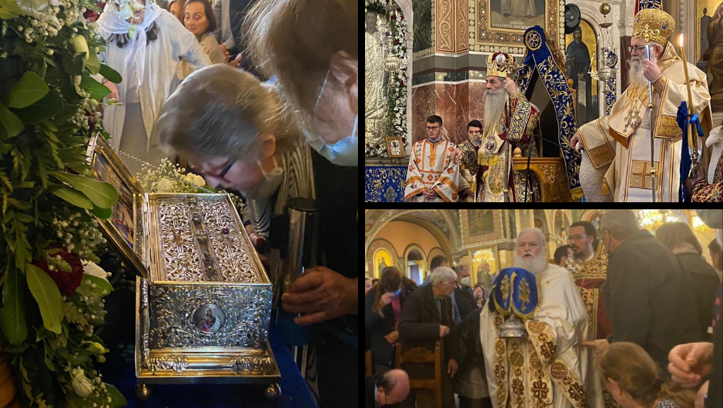 Στο μεταξύ και σήμερα Κυριακή χιλιάδες κόσμου σχημάτιζαν ουρές έξω από το ναό του Αγίου Νικολάου για να προσκυνήσουν το ιερό κειμήλιο της Ορθοδοξίας. Από τις 5 Νοεμβρίου οπότε και εξήλθε από την Ιερά Μεγίστη Μονή Βατοπαιδίου μέχρι και σήμερα χιλιάδες κόσμου, μέρα – νύχτα, συρρέουν με ευλάβεια για να την προσκυνήσουν.