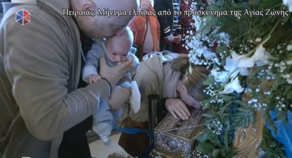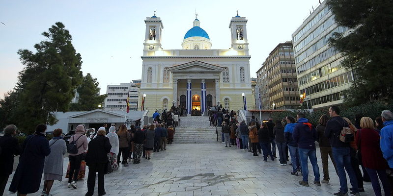 Πρωτοφανής είναι η προσέλευση των πιστών στον Ιερό Ναό του Αγίου Νικολάου στον Πειραιά όπου τίθεται σε προσκύνηση η Τιμία Ζώνη της Παναγίας.