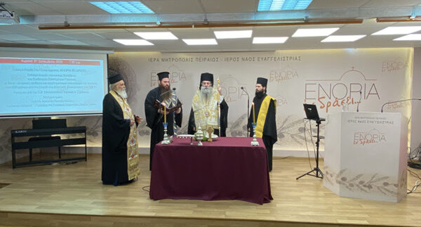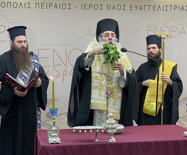 Με την τέλεση του Αγιασμού από τον Σεβασμιώτατο Μητροπολίτη Πειραιώς κ. Σεραφείμ, και χωρίς την συμμετοχή κοινού, λόγω των απαγορεύσεων που ισχύουν, πραγματοποιήθηκε το απόγευμα της Κυριακής 27 Σεπτεμβρίου, η επίσημη έναρξη του προγράμματος «ΕΝΟΡΙΑ εν δράσει… 2020», στο Πνευματικό Κέντρο του Ιερού Ναού Ευαγγελιστρίας Πειραιώς.