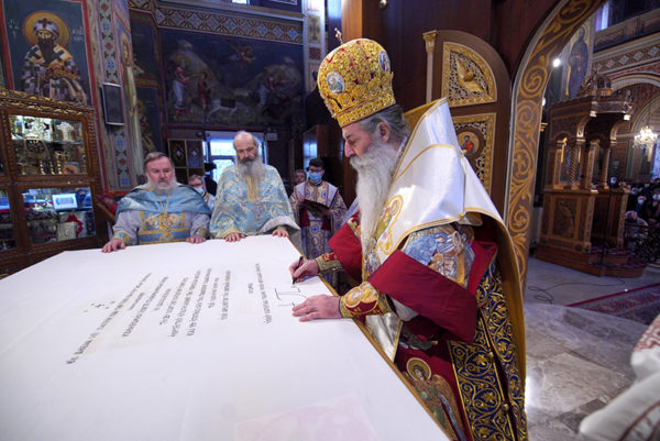 Μέσα σε κλίμα πνευματικής χαράς και σύμφωνα με την τάξη και το τυπικό που ορίζει η Εκκλησία, τελέσθηκε την Παρασκευή 25 Μαρτίου 2022 η Ιερά Ακολουθία «επί τη Διασαλεύση» της Αγίας Τραπέζης καθώς και η πρώτη πανηγυρική Αρχιερατική Θεία Λειτουργία, μετά την πλήρη αποπεράτωση των έργων ανακαίνισης του Ιερού Βήματος του Ιερού Ναού Ευαγγελιστρίας Πειραιώς από τον Σεβασμιώτατο Μητροπολίτη Πειραιώς κ. Σεραφείμ.