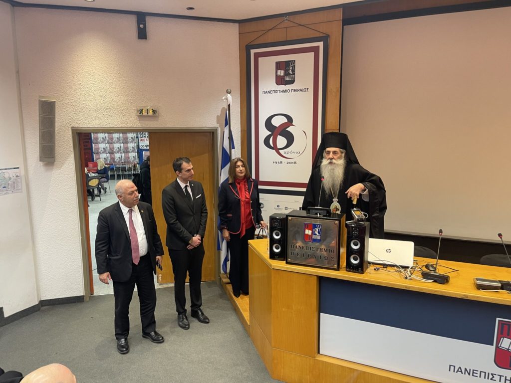 Στο Αμφιθέατρο Συνεδρίων του Πανεπιστημίου Πειραιώς πραγματοποιήθηκε χθες Τρίτη 30 Ιανουαρίου 2024 η καθιερωμένη κατ’ έτος κοινή εκδήλωση (εόρτιο βραδινό) της Ιεράς Μητροπόλεως και του Πανεπιστημίου Πειραιώς, με αφορμή την εορτή των Τριών Ιεραρχών, προστατών της Παιδείας και των Γραμμάτων.