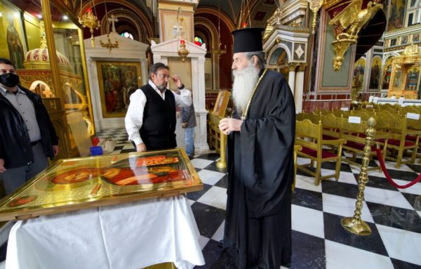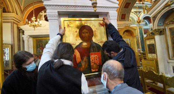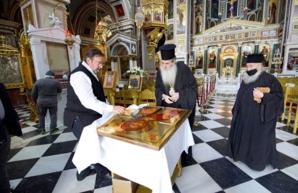 Η Ενθρόνιση της Ιεράς Εικόνος του Σωτήρος Χριστού πραγματοποιήθηκε τη Τετάρτη 16 Νοεμβρίου 2021 στον Ιερό Μητροπολιτικό Ναό Πειραιώς των Αγίων Κωνσταντίνου και Ελένης, από τον Σεβασμιώτατο Μητροπολίτη Πειραιώς κ. Σεραφείμ.