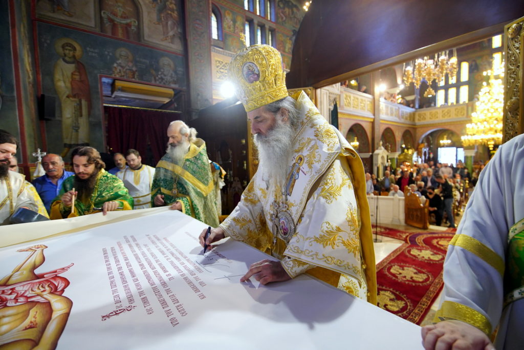 «Διαβάζοντας την ευχή της ‘’Αναφοράς’’, συγκλονίζομαι κάθε φορά που λέω αυτά τα λόγια: ότι δεν υπήρχαμε και όμως Εκείνος μας δημιούργησε. Και παρότι εμείς πέσαμε, και Τον υβρίσαμε και Τον αρνηθήκαμε, Εκείνος δεν σταμάτησε να κάνει οτιδήποτε, ακόμη και να δώσει τον εαυτό Του και τη ζωή Του και το αίμα Του και το σώμα Του, για να μας ανεβάσει στους ουρανούς», είπε ολοκληρώνοντας το κήρυγμά του ο Σεβασμιώτατος, ευχόμενος το παράδειγμα του Αγίου και Θεοφόρου Νείλου του Μυροβλύτου «να μας εμπνέει, να μας οδηγεί και να μας φωτίζει».