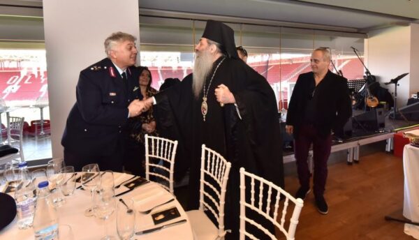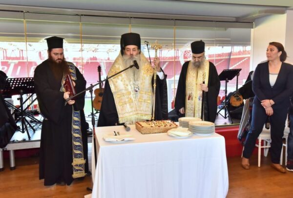 Σε ένα από τα πρώτα κομμάτια της Βασιλόπιτας ο Σεβασμιώτατος μνημόνευσε τον οικοδεσπότη που φιλοξένησε την εκδήλωσή μας αυτή, τον ιδιοκτήτη και διαχρονικό ηγέτη του Ολυμπιακού Ευάγγελο Μαρινάκη, ο οποίος βρίσκεται διαρκώς αρωγός και συμπαραστάτης σε κάθε προσπάθεια της τοπικής μας Εκκλησίας και με έξοδα του οποίου πραγματοποιήθηκε η όλη εκδήλωση.