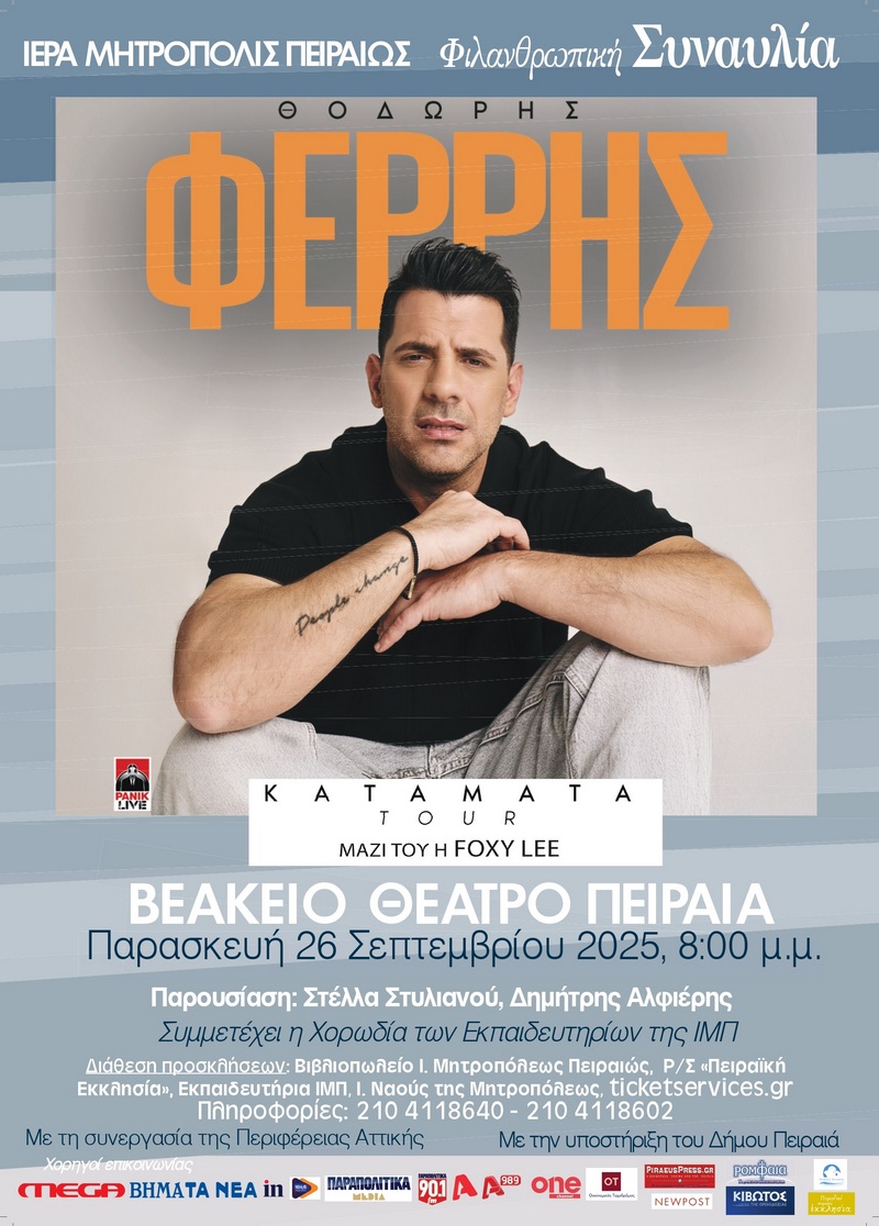 Φιλανθρωπική συναυλία της Ιεράς Μητροπόλεως Πειραιώς με τον Θοδωρή Φέρρη στο Βεάκειο Θέατρο