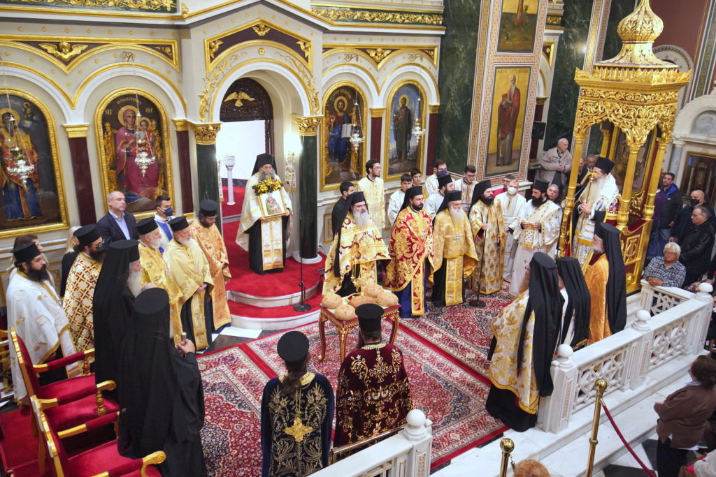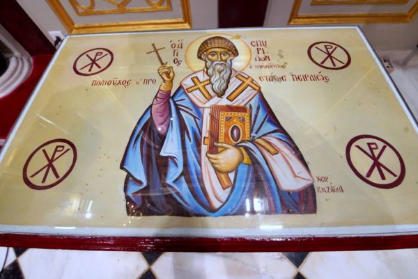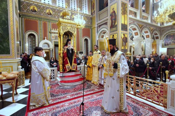«Αισθάνομαι μεγάλη τιμή και μεγάλο δέος να ίσταμαι απόψε χοροστατών στον Θρόνο του Σεβασμιωτάτου Αγίου Πειραιώς κ. Σεραφείμ. Σε έναν Θρόνο τον οποίο τον κοσμεί η γεραρά του, επιβλητική, ιεροπρεπής, μεγαλοπρεπής παρουσία, ποιμαίνοντας αυτή την πόλη της εργατιάς, την πόλη του μόχθου, την πόλη των αγώνων, την πόλη των καημών, την πόλη της ευσέβειας και της αγάπης, την πόλη που ακριβώς είναι γέννημα και θρέμμα του Αγίου Σπυρίδωνος», είπε αρχικά στο κήρυγμά του ο Μητροπολίτης Φθιώτιδος κ. Συμεών, προσθέτοντας πως «αυτή πόλη, αν υπάρχει και ζει, το οφείλει στον Άγιο Σπυρίδωνα».