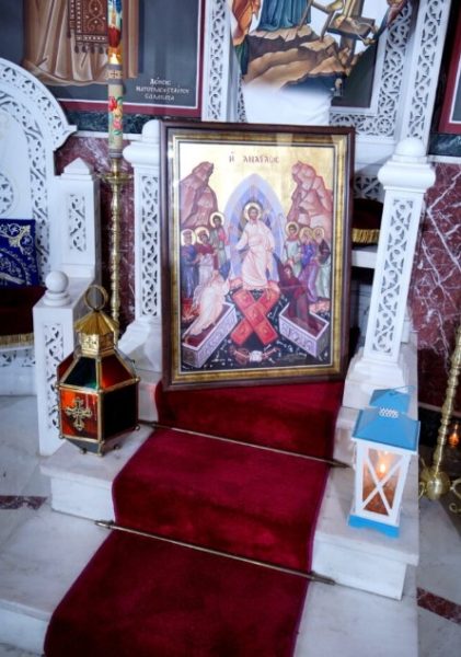 Στην συνέχεια, μετά την ανάγνωση του Ιερού Ευαγγελίου ο Σεβασμιώτατος κ. Σεραφείμ ανήγγειλε το χαρμόσυνη μήνυμα της Αναστάσεως, ψάλλοντας το «Χριστός Ανέστη».