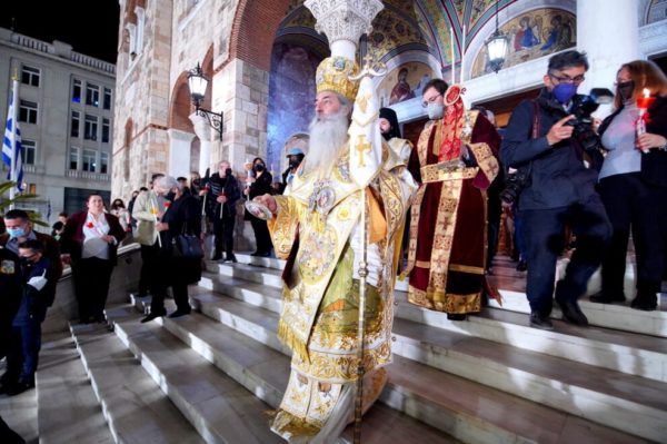 Μετά το «Δεύτε λάβετε Φως…» και την μετάδοση του Αγίου Φωτός, κλήρος και λαός με επικεφαλής τον Σεβασμιώτατο κατευθύνθηκαν στην ειδική εξέδρα που είχε τοποθετηθεί στον αύλειο χώρο του Καθεδρικού Ναού και εκφωνήθηκε η Πασχάλιος Ποιμαντορική Εγκύκλιος του Σεβασμιωτάτου.